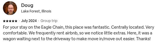 ईगल रिवर चेन के केंद्र में 100 फीट से अधिक का तटवर्ती क्षेत्र