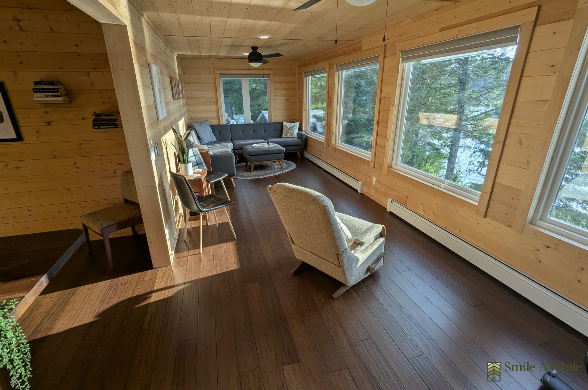 व्यापक नवीनीकरण और संपूर्ण रखरखाव ने इस घर को सर्वोत्तम स्थिति में बनाए रखा है। आधुनिक लकड़ी के फर्श और कालीन के साथ-साथ विशाल खुले स्थान इस केबिन को सभी के लिए एक आरामदायक जगह बनाते हैं।